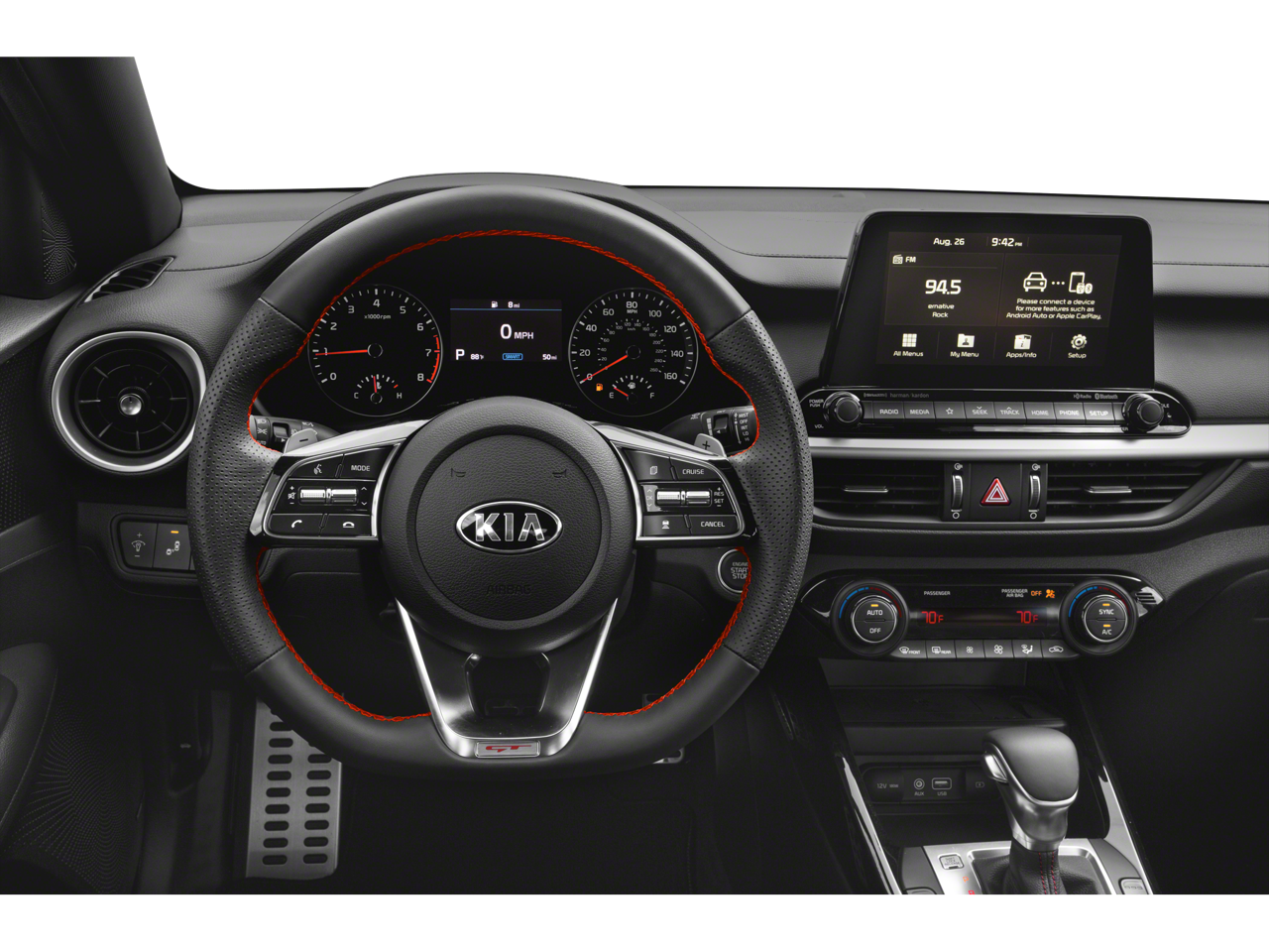 - Radio: AM/FM/MP3 harman/kardon Premium Audio System -inc: 320 watts, 8 speakers, Clari-Fi digital audio restoration, SiriusXM satellite radio, UVO eServices, support for Android Auto and Apple CarPlay smartphone integration, Bluetooth® wireless technology, voice recognition, 2-port USB charger (center console) and wireless phone charger